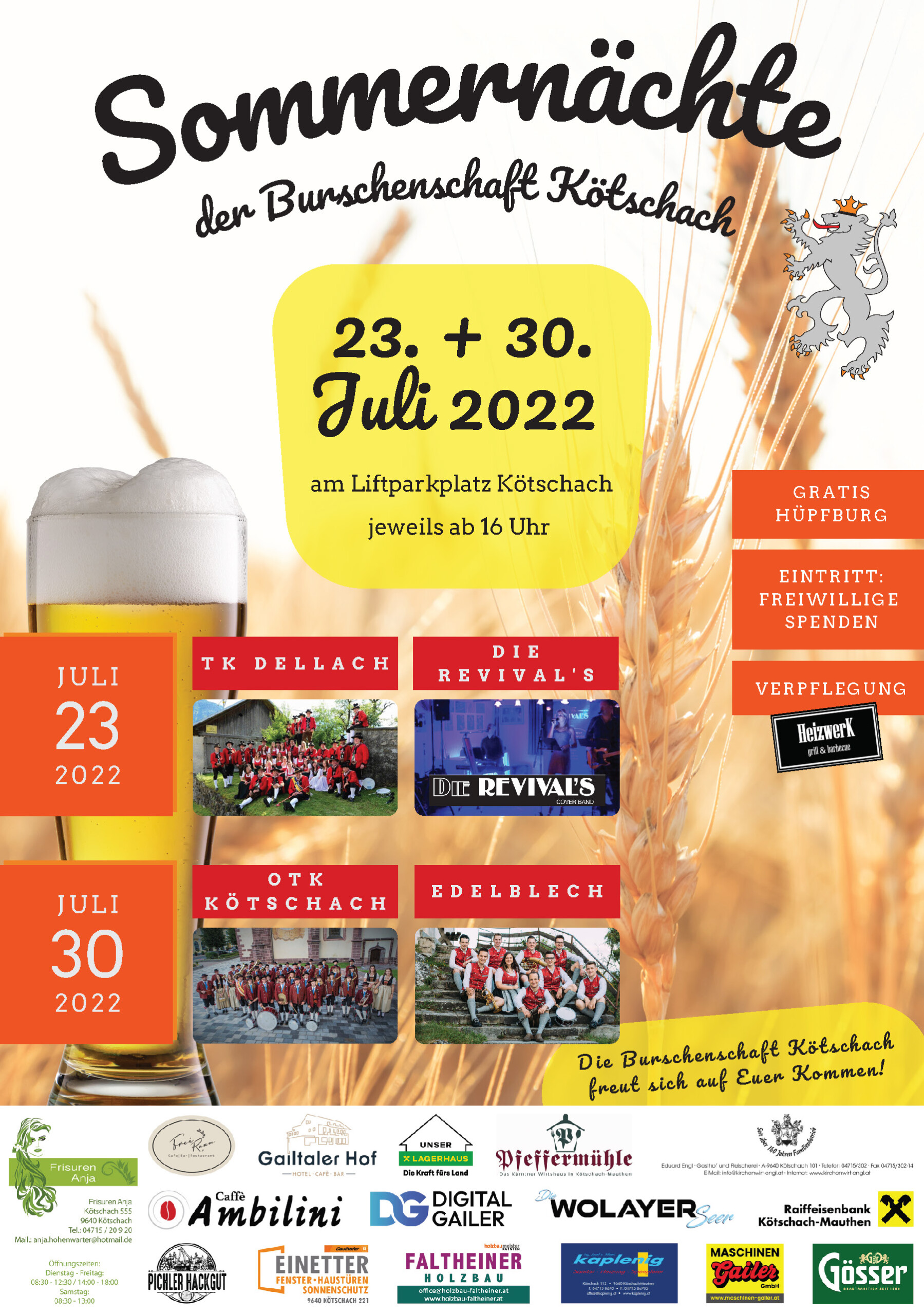 Am 23. + 30. Juli 2022, jeweils ab 16 Uhr finden die Sommernächte am Liftparkplatz in Kötschach statt.