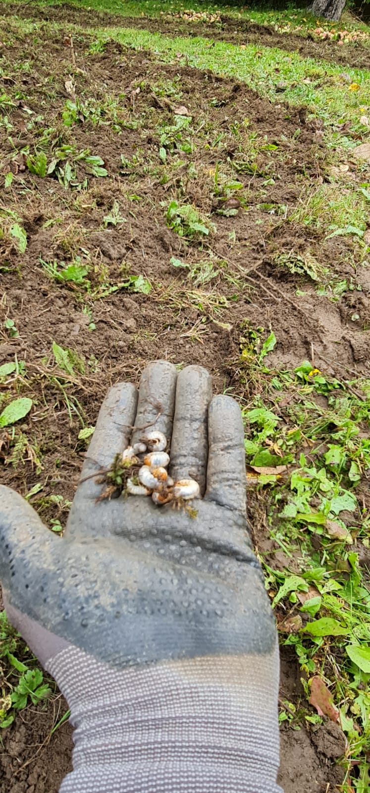 In diesem Jahr haben zahlreiche Mai-Käfer-Weibchen ihre Eier nach ihrem Hochzeitsflug im April und Mai in der Erde abgelegt. Im Juni/Juli sind daraus die typisch schmutzig-weißen, c-förmigen Larven geschlüpft. Sie ernähren sich durch Wurzelfraß und stellen ein großes Problem für die lebenden Pflanzen dar.