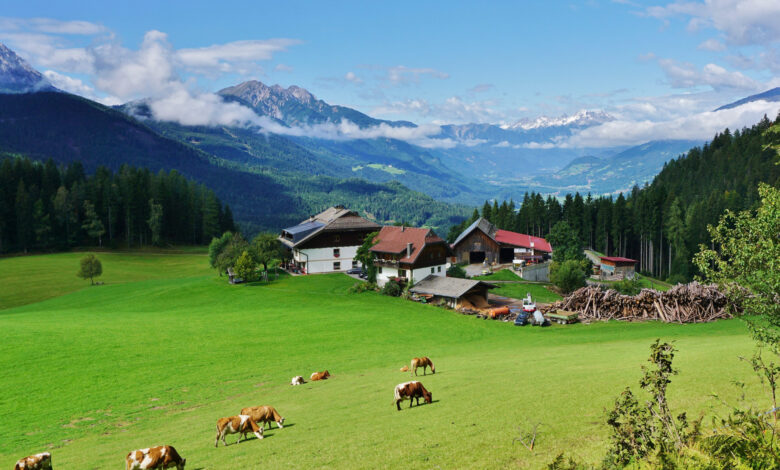 Ein Blick über den Tschabitscherhof am Weissensee in die Lienzer Dolomiten, (c) tschabitscher.at