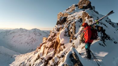 Adrenalin-Erlebnis Freeriden: Ein Berg, ein Mensch, Schnee, Skier und Abfahrt. Freeriden ist das Ski- oder Snowboardfahren fern ab von …
