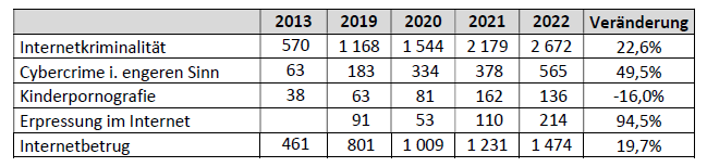 Die Internetkriminalität ist wie in den Jahren zuvor, auch 2022 gestiegen. Fast die Hälfte aller Delikte aus diesem Bereich entfielen auf Internetbetrug.