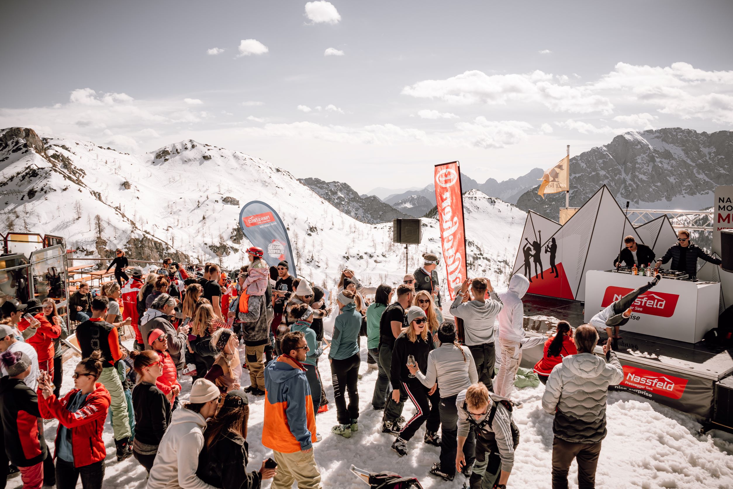 Pistenfrühling am Nassfeld. Bis Ostern verwandelt sich Kärntens größtes Skigebiet standesgemäß zur größten Sonnenterrasse der Alpen. Mit chilligen Sounds, lässiger Barkeeper-Show und gschmackiger Hüttenkulinarik lädt das Nassfeld bei „Music meets Sun“ powered by wellcard & Antenne Kärnten, zum Saison-Finale.