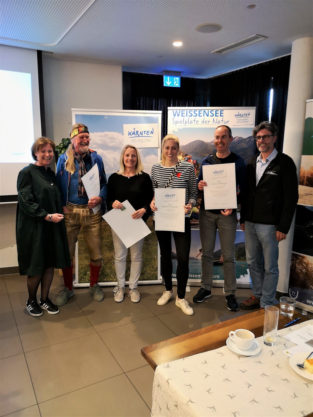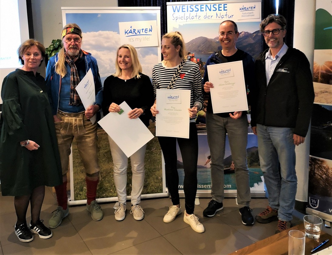 In der Karnischen Region sind ab sofort vier „NaturAktivGuideKärnten“ mehr unterwegs. Nach erfolgreichem Abschluss der erforderlichen Ausbildungsmodule wurde nunmehr auch die mit der offiziellen Ernennung übliche Urkundenüberreichung seitens der Arge Naturerlebnis Kärnten vollzogen. Für die „Neuen“ zählt die Betreuung und Begleitung der Urlaubsgäste wie auch Gruppen mit wanderfreudigen GailtalerInnen und Freunden schon seit Jahren zur verantwortungsvollen „Lieblingsbeschäftigung“. Wurden sie doch vor geraumer Zeit zu Kärntner Bergwanderführern ausgebildet und sind als solche Bergauf und Bergab mit den ihnen anvertrauten Wanderteilnehmern unterwegs. Die Zusatzausbildung zum N.A.G. garantiert in zahlreichen Themenbereichen eine weitere Qualitätssteigerung.
