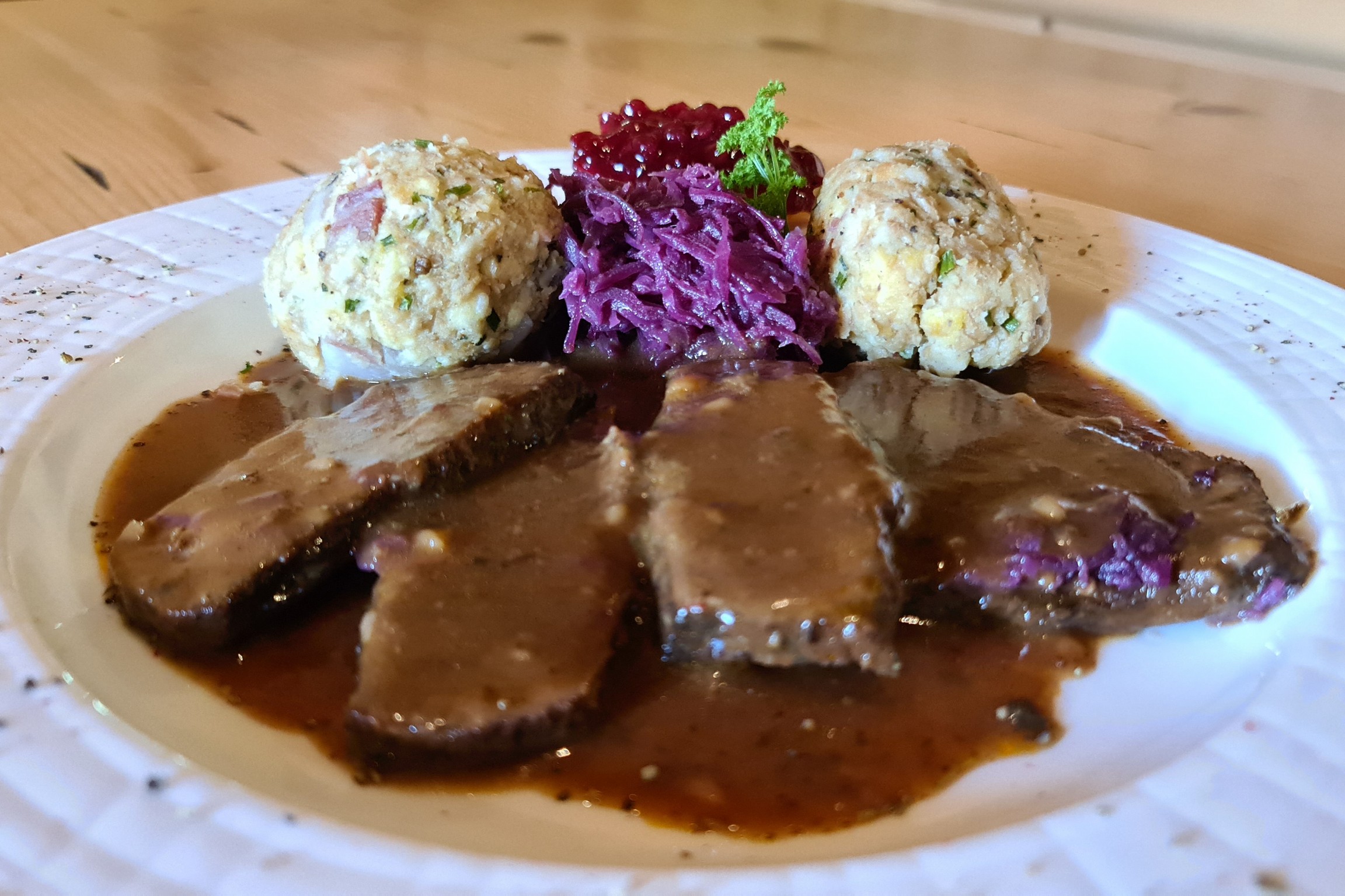 In der Bärenhütte wird „gute Küche“ großgeschrieben. Die meisten Produkte für die Zubereitung der Gerichte stammen ausschließlich aus der Region und von dem eigenen Bio-Bauernhof: Rindfleisch, Polenta, Würstl, Salami sowie Spirituosen wie beispielsweise Obstler.