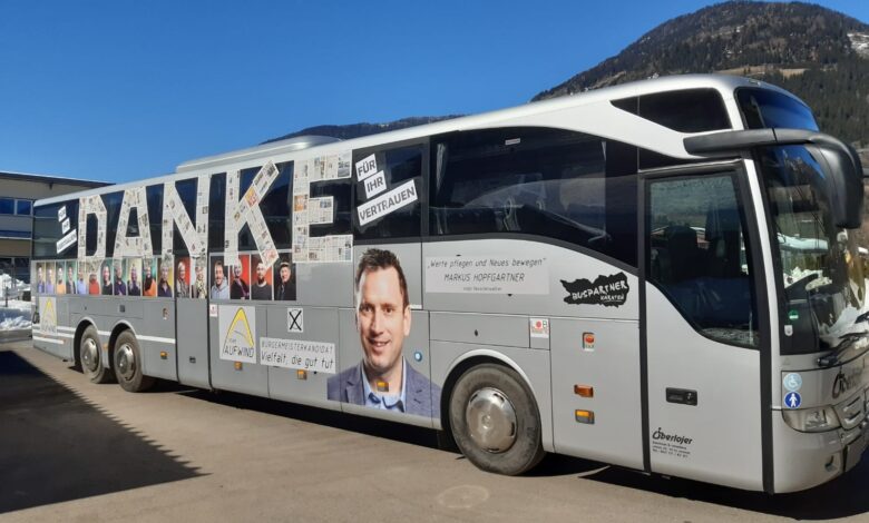 Markus Hopfgartner mit Team Aufwind gratulieren den Bürgermeister Ewald Tschabitscher zur Wiederwahl.