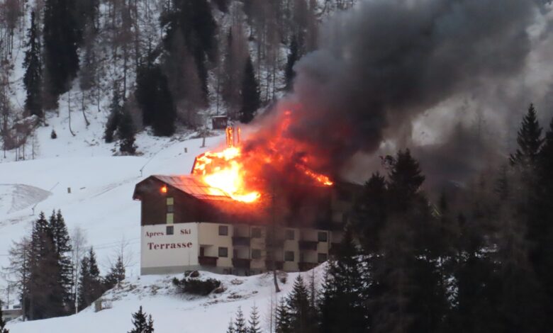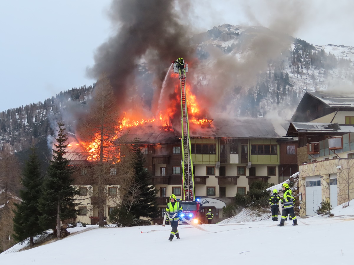 Großbrand in geschlossenem Hotel Plattner am Nassfeld