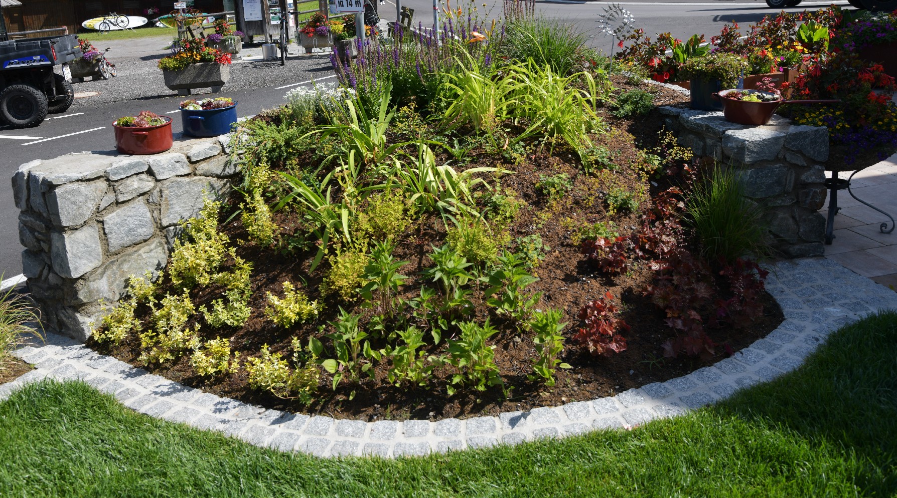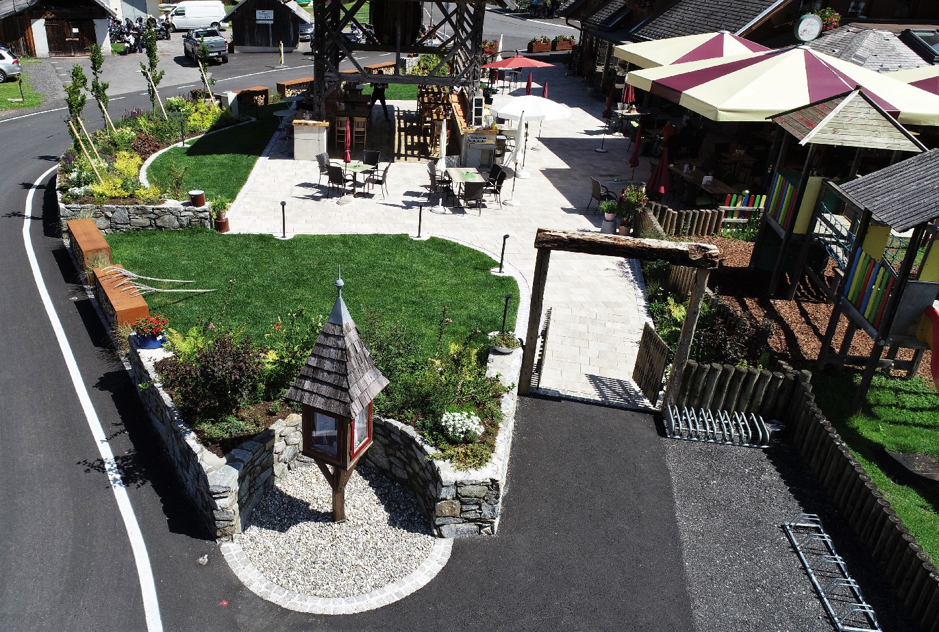 Die gestalterische Planung und Umsetzung des vereinten Grundes übergaben die Gemeinde und die Familie dem Garten- und Landschaftsbauer Dipl.- Ing. Andreas Wieser und seinem Team.