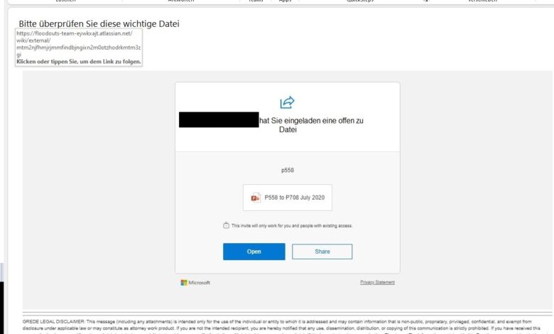 Wenn Sie eine Nachricht mit dem Betreff „Bitte überprüfen sie diese wichtige Datei“ erhalten, dann löschen Sie diese umgehend. Klicken Sie keinesfalls auf den Link (siehe Bild) und geben Sie keine persönlichen Daten preis.