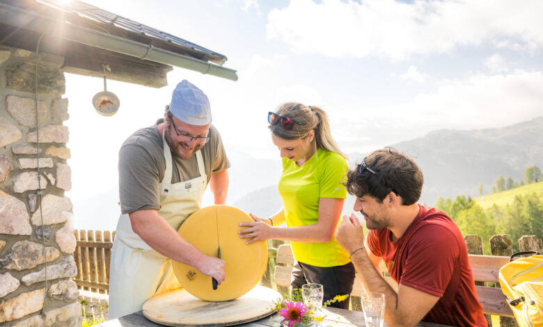 Watschiger Alm-Obmann Martin Jakob und Elisabeth Buchacher, Obfrau des Vereins Gailtaler Almkäse, laden am 27.07. um 11 Uhr zum traditionellem Almkäseanschnitt. Der europaweit-geschützte Gailtaler Almkäse g.U., hergestellt aus der Milch von Kühen, die auf den saftigen Almwiesen des Gailtals grasen, zeichnet sich durch seinen würzigen Geschmack und seine geschmeidige Textur aus.