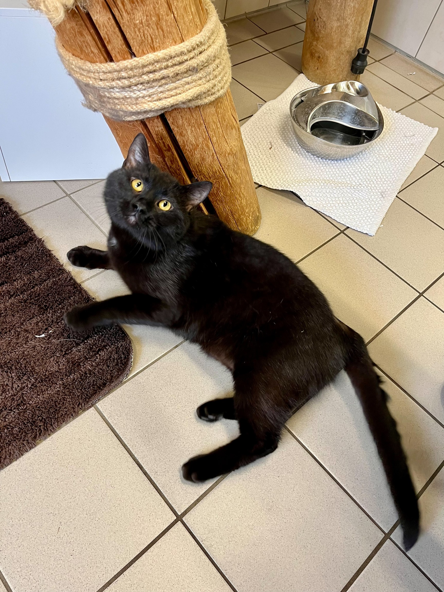 Die Tierpfleger:innen bei TiKo meinen: Anfangs bin ich sehr zurückhaltend und etwas schreckhaft, hole mir meine Streicheleinheiten aber von selbst ab und suche ein ruhiges, liebevolles Zuhause mit Freigang.