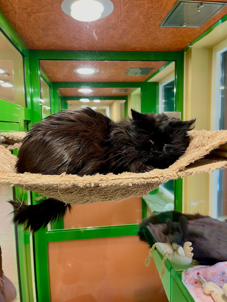 Hier in der TiKo Katzenvergabe bleibe ich gerne ganz oben in meiner Hängematte liegen. Erstens ist die echt bequem. Zweitens habe ich hier oben einen Überblick über alles und werde nicht so schnell von irgendjemandem angegriffen. Kuscheln und stundenlange Streicheleinheiten? Die will ein taffer Pirat nicht unbedingt. Zumindest noch nicht.