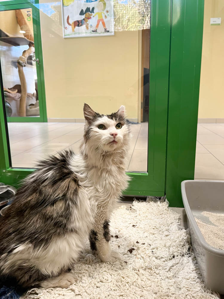 Die Tierpfleger:innen bei TiKo meinen: Ich bin anfangs eher vorsichtig und unsicher, bin wachsam und gebe gerne Laut, suche aber die Nähe zu Menschen und werde als Notfellchen vergeben, da ich chronische Inkontinenz habe und täglich Medikamente benötige.